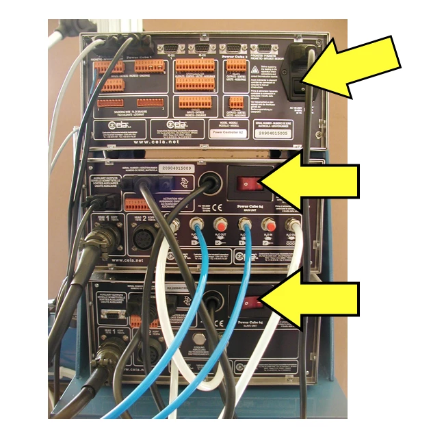 Compruebe que las unidades generadoras (de 1 a 3 unidades, según versión) tengan activado el interruptor de encendido (E, F, G apartado 5.4) para ello use los interruptores en la parte posterior de cada una.